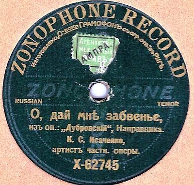 As many future singers, Isachenko sang during his childhood in a church choir. Konstantin Isachenko was heard by the well known vocal teacher, professor at the St. Petersburg Conservatoire, Rubez, who gave him his first singing lessons. During 1902-1908, Isachenko took singing lessons at the St. Petersburg Conservatoire with the famous teacher S.Gabel. From 1908, Isachenko sang at the National house in St. Petersburg . In 1911-12, Isachenko sang in Kiev , and from 1912 again in St. Petersburg , where he sang practically in all opera theatres of the city. In 1911, Isachenko undertook a tour through Europe (Monte-Carlo, Milan , Paris , London ), where he sang in the Russian seasons of S.Djagilev. Despite being a lyrical tenor, his technique allowed him to sing parts such as Lenski, Alfredo, Berendey, Vladimir (Prince Igor), besides Almaviva etc. When he stopped singing, Isachenko became a known vocal pedagogue. He was professor at thePetersburg conservatoire (1918-1929 and 1938-1953). Among his students were Baturin, Geft among others.